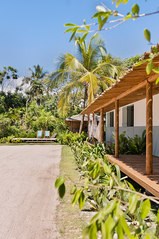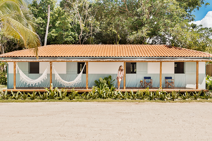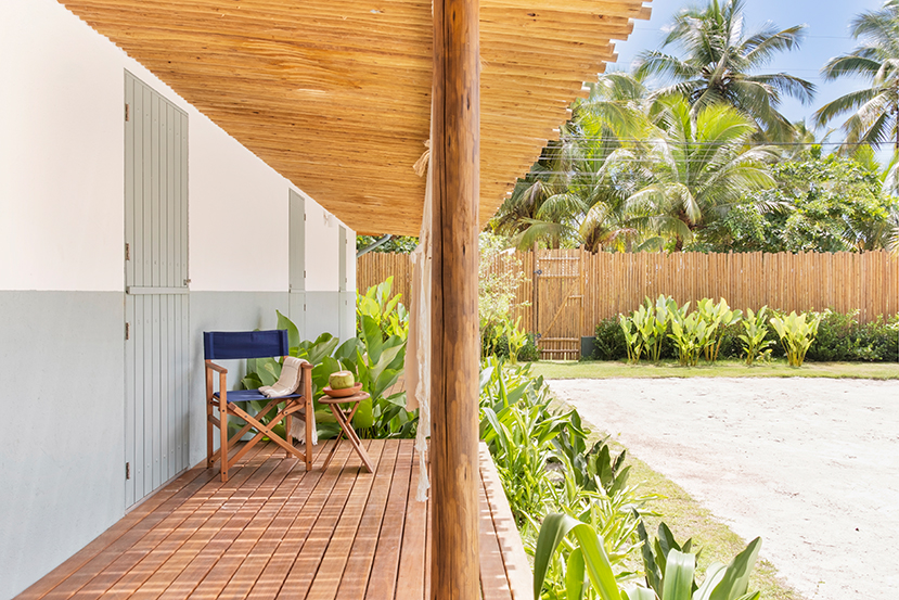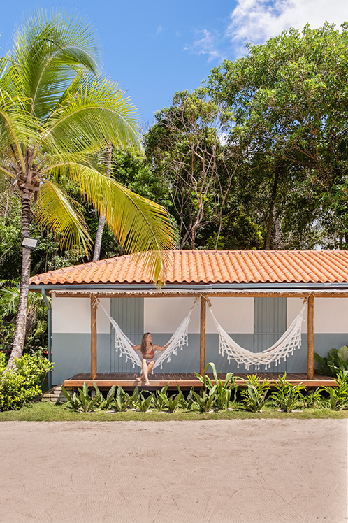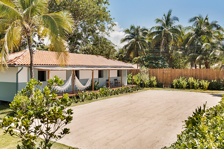 Situado na Praia de Algodões, na Península de Maraú, Bahia, o projeto, feito para um jovem casal receber convidados, foi criado ao redor da quadra de areia existente.